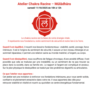 • 11 octobre 2025 Chakra Racine – S’Ancrer et Trouver sa sécurité intérieure