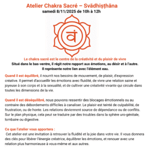 • 8 novembre 2025 Chakra Sacré – Sentir et Créer