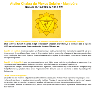 • 13 décembre 2025 Chakra Plexus solaire – Oser et Rayonner – Reporté !