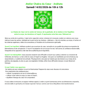 • 14 février 2026 Chakra Cœur – S’Ouvrir Donner et Aimer